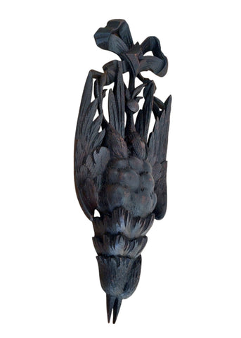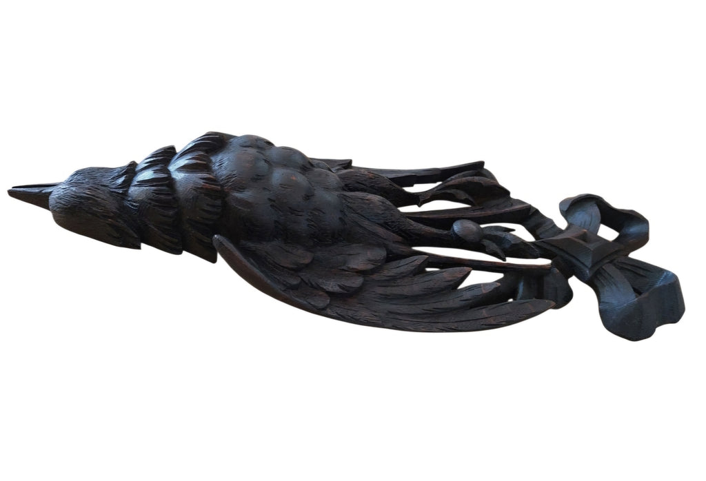 The rich, warm tone of the walnut combined with the meticulous craftsmanship gives these carvings a sense of authenticity and old-world charm. Every element, from the delicately carved feathers to the flowing ribbon, reflects the exceptional skill of the Black Forest artisans.